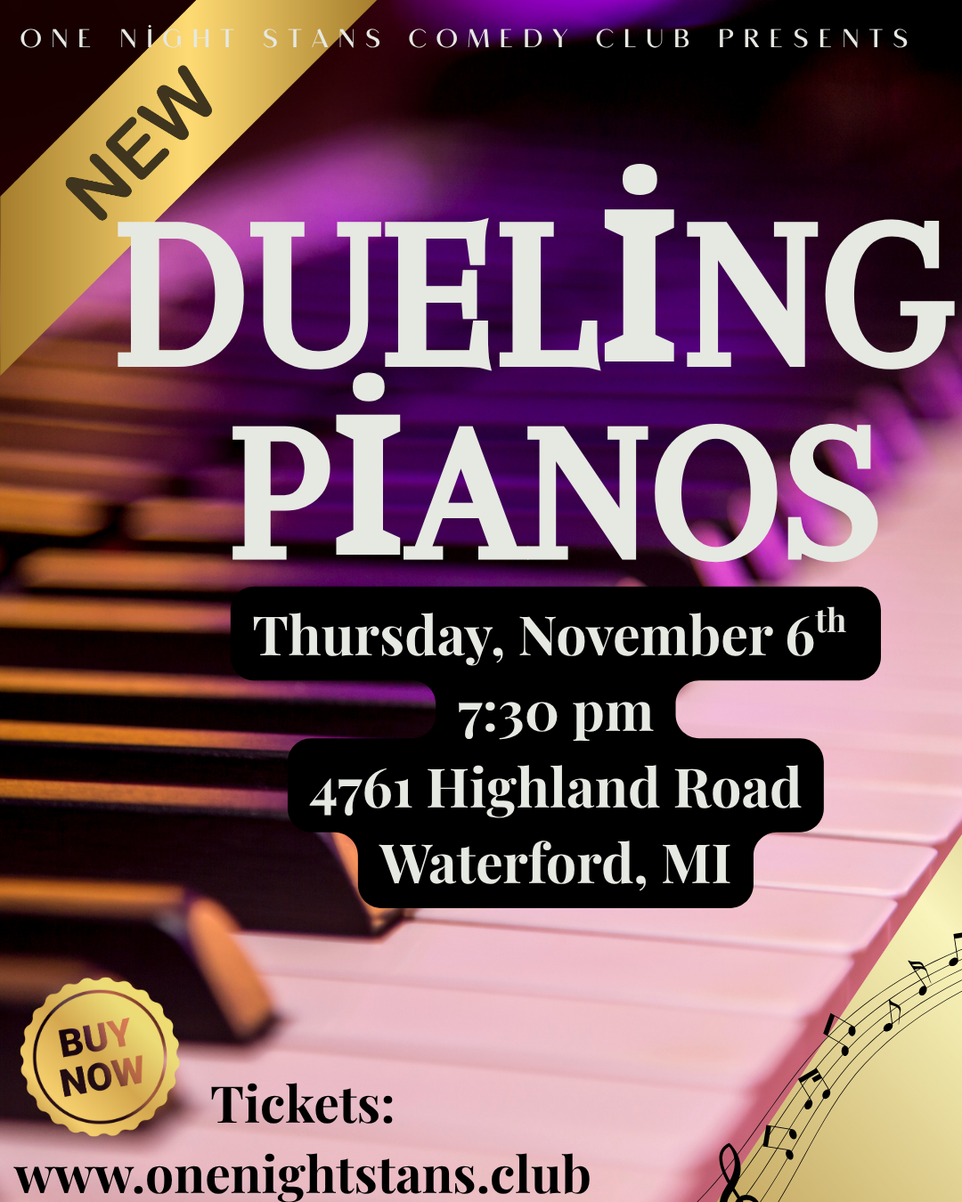 Brand new to One Night Stan’s, Dueling Pianos is a high-energy night of sing-alongs, audience requests, and hilarious on-the-spot music battles. The crowd picks the songs, the players bring the talen (Click Buy to read more)
